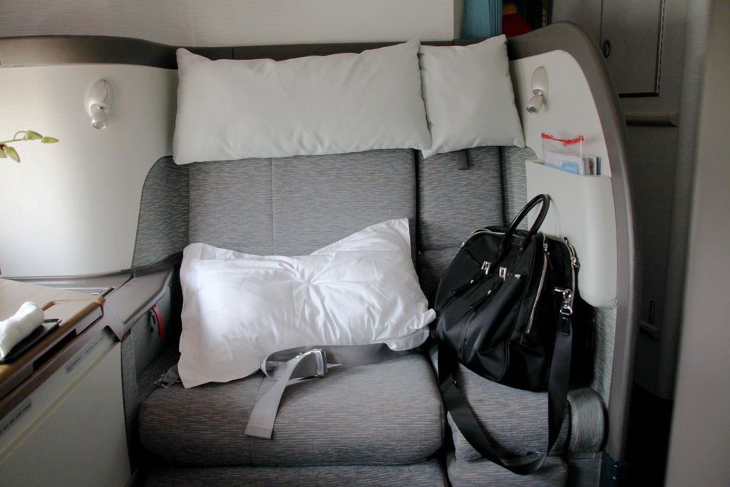 長程航班一年才搭3.4次不多,印象中,歐亞長程班機的商務艙裡看見年輕女性比例不太高,漂亮更是少之又少,眼前的黑髮美女真是氣質脫俗,讓人無法不盯著她看,這樣的美麗只有一個小瑕疵,那是是她的11A剛好也是是我登記證上頭印的位置。看了一下她跟登機證,遲疑了一下,她跟我點了頭示意(內心已融化)空姐看到,請我不妨先選坐隔壁的12A~雖不知道為何劃位重複,那一秒鐘的想的是,這輩子搭商務艙就這次最「回本」,一定要跟她做成朋友!