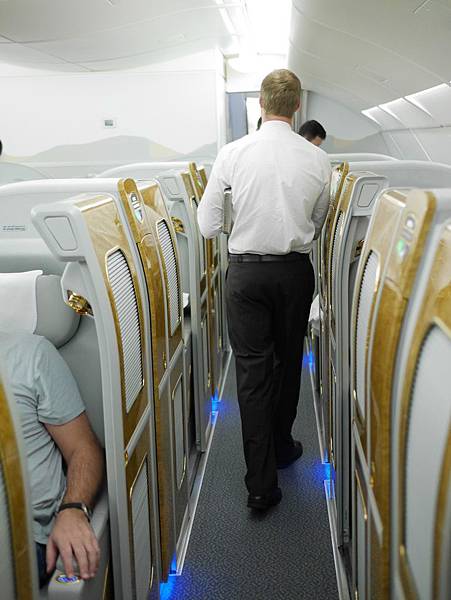 大概是因為我還年輕,空服員來自十幾個國家的阿聯酋航空算是活力奔放,座艙長也沒有20年年資,成員來自多種族,黃種人航空常耳聞的學姊學妹制也不明顯;對於高階艙客戶,這些FA一定是笑臉迎人,而且出奇的high,你不要太直接搭訕把妹,人家對你絕對有最高限度的尊重(容忍)
